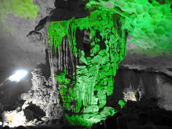 - After a 10-course lunch (with many veggie options and lots of grease), we stopped at Surprise Cave, with just about every other tourist in tow. We kayaked around the bay and explored a floating village.