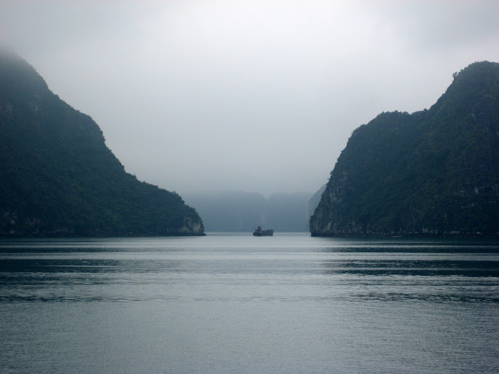 - After a 4-hour drive through rice paddies, and complete with hand swept highways, we arrived at Halong Bay, which reminded us of the touristy Fisherman's Wharf in SF.